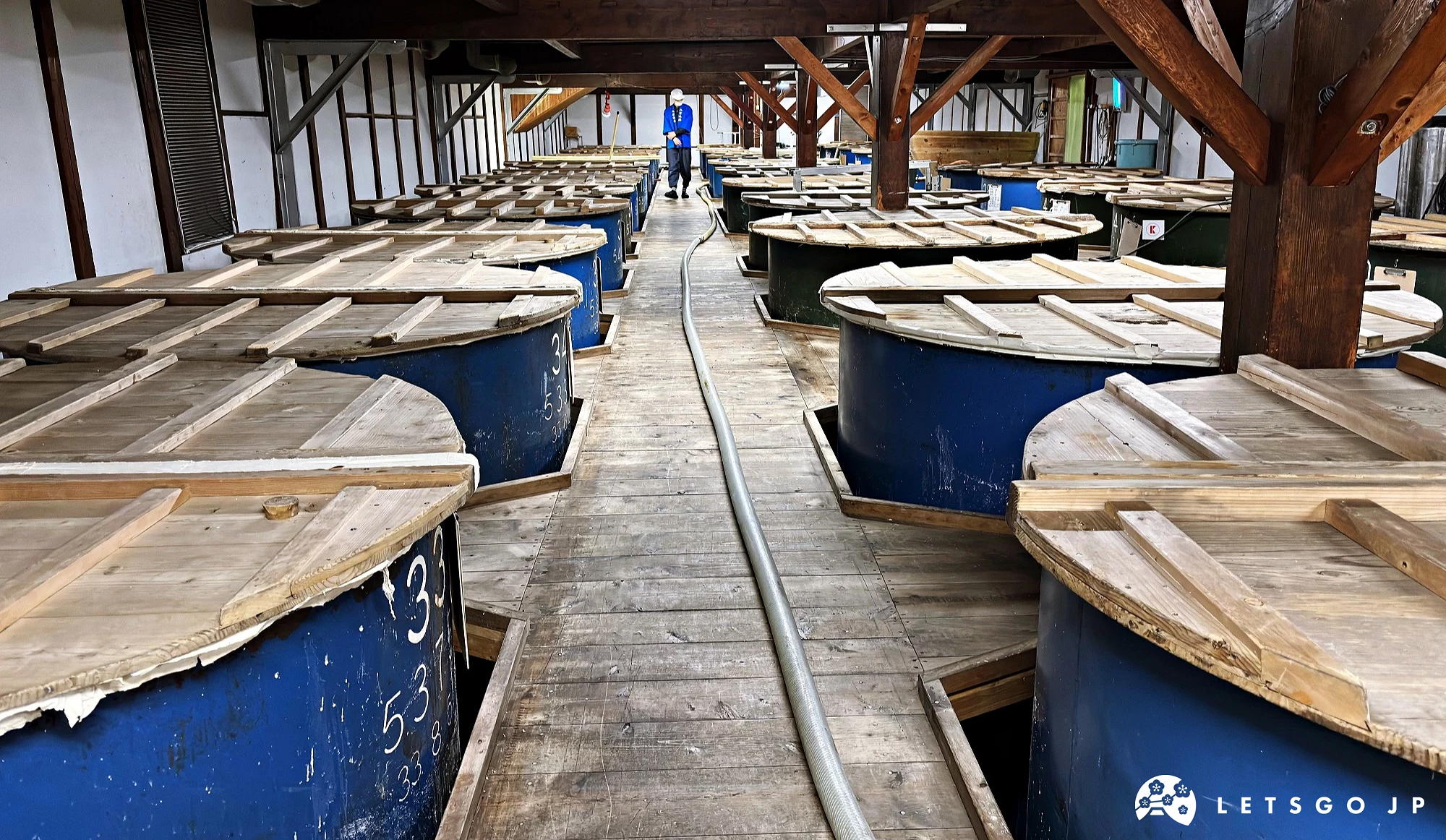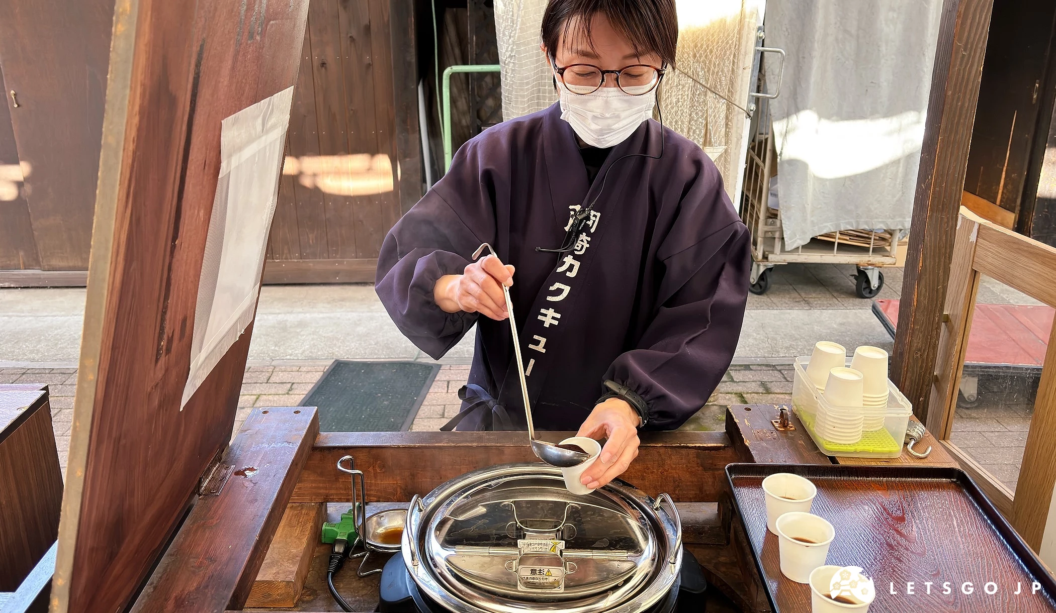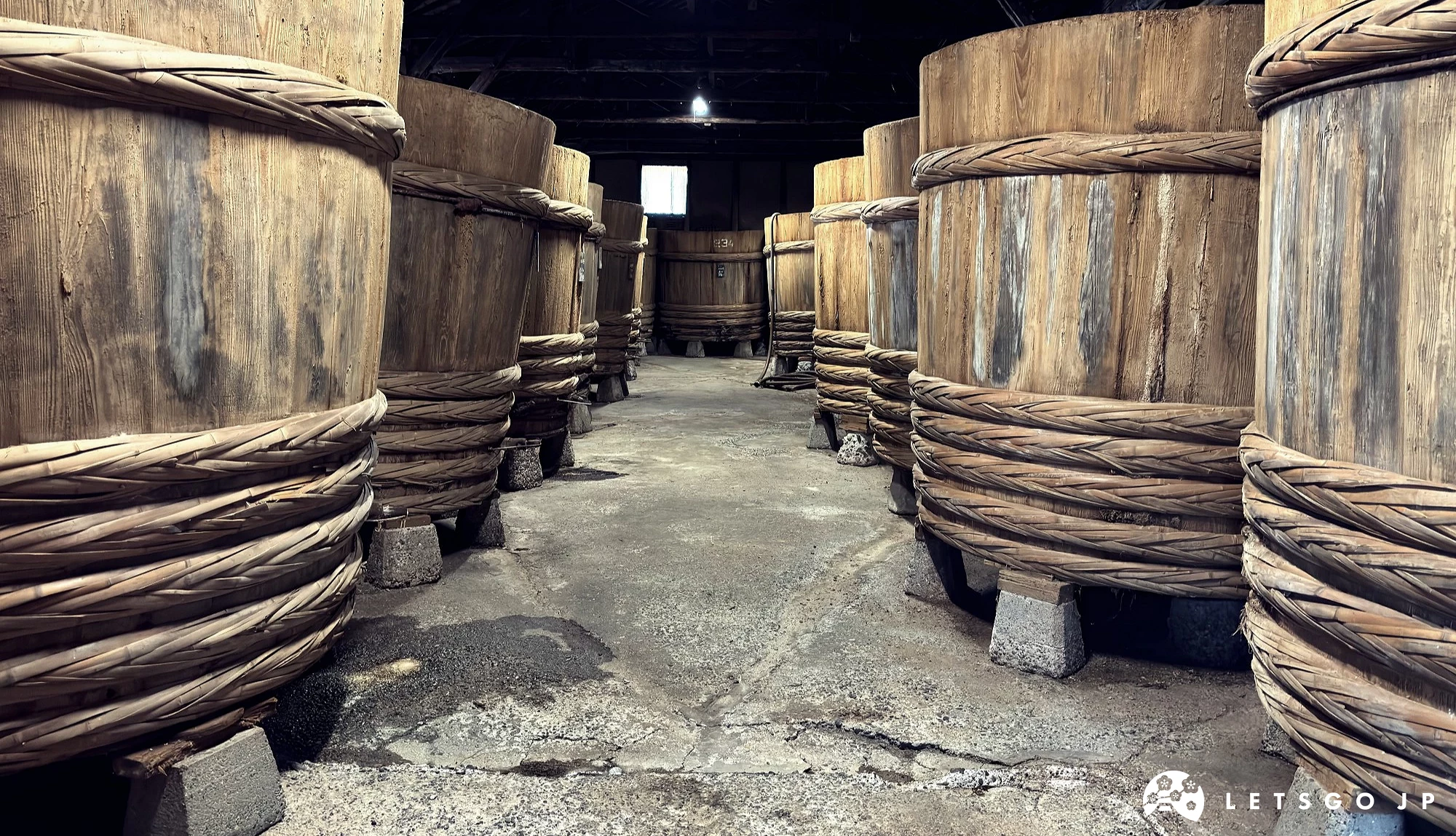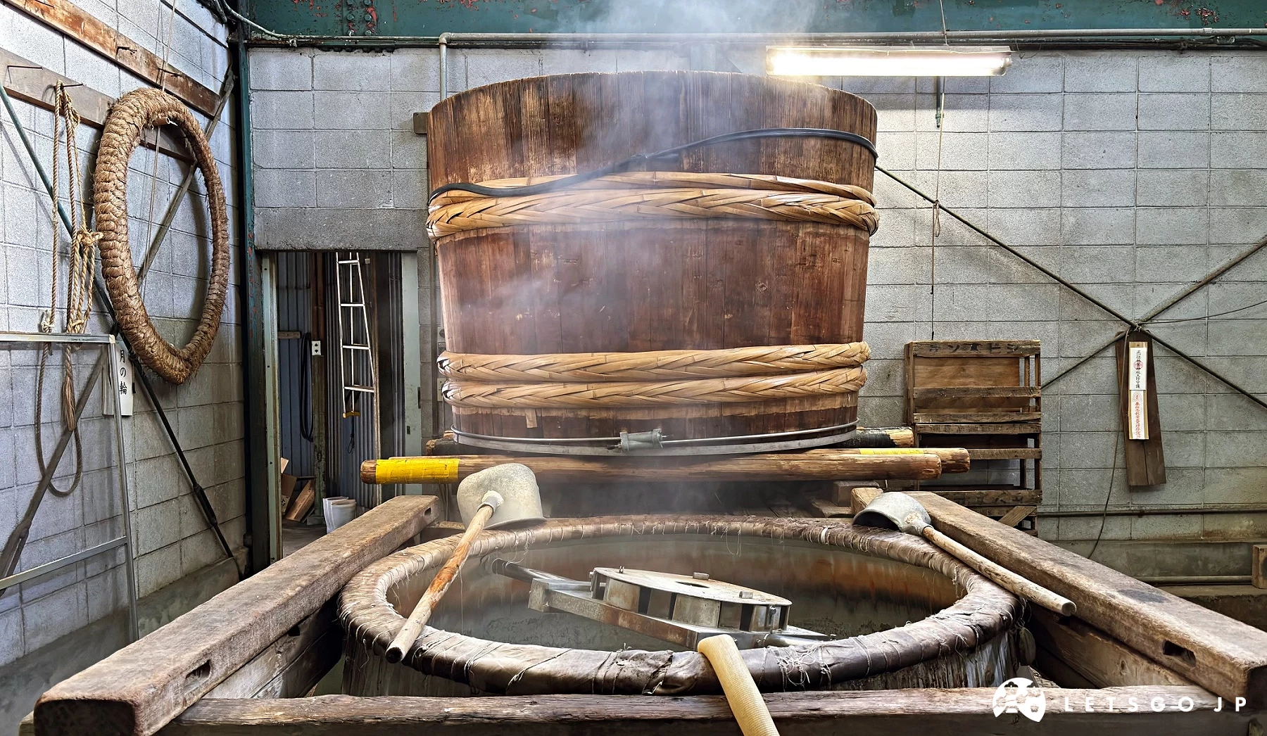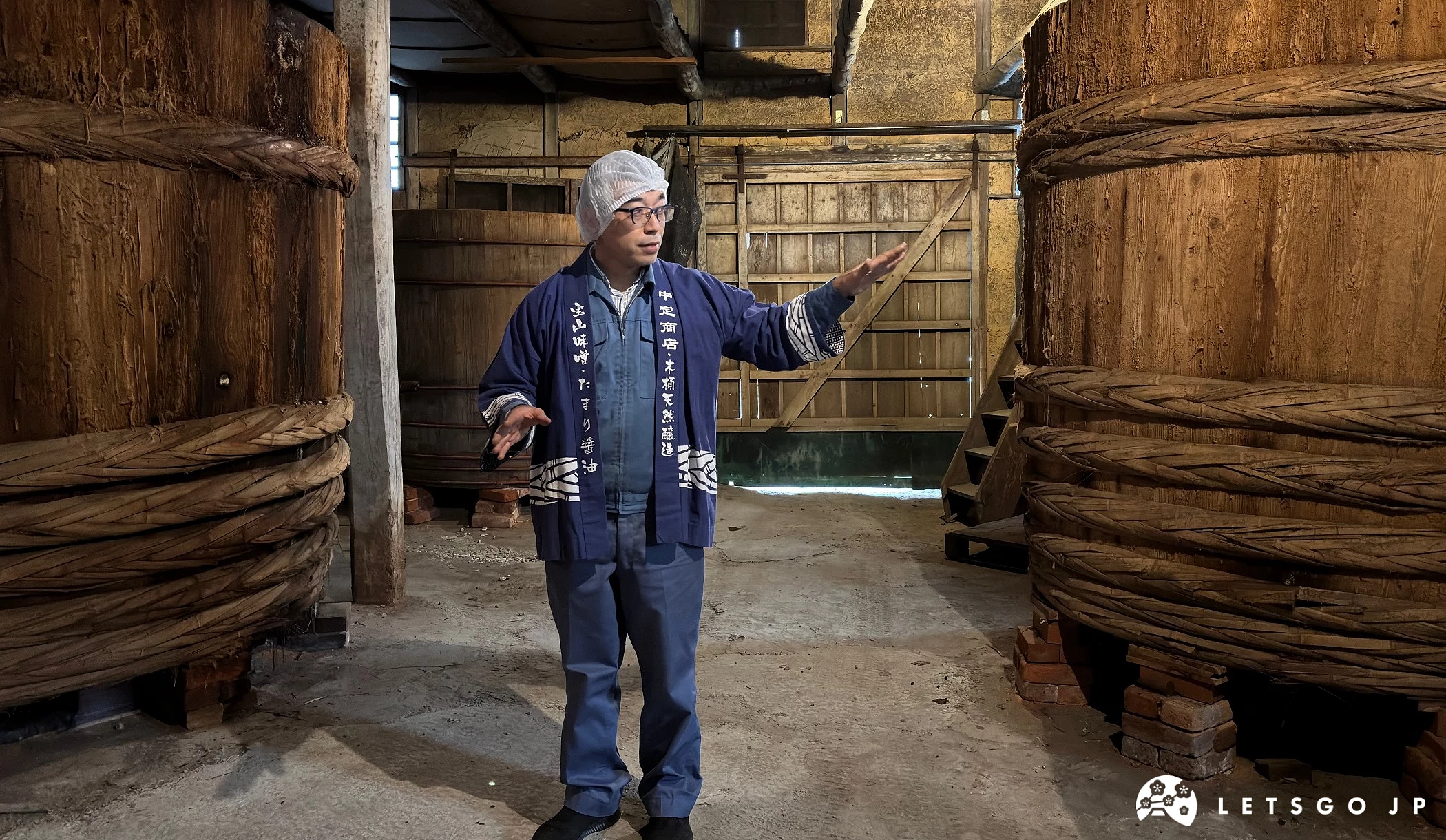 溜醬油的誕生與豆味噌息息相關,據說是在製作豆味噌的過程中自然滲出液體,這些液體沉澱在木桶底下,取出後用來製作溜醬油。溜醬油僅用大豆和鹽水製成,把蒸熟的大豆搓成團狀,表面附著麴菌製成豆麴,接著和鹽水混合後放入大型木桶中,以河川石頭封蓋,經過三年的時間發酵而成。特有的工序是「舀、澆」,用勺子舀起溜醬油,從石頭上方反覆澆回。參觀之後可到直營商店「本藏」試吃四種不同濃度與風味的溜醬油,比較差異,找到自己最喜歡的一款。