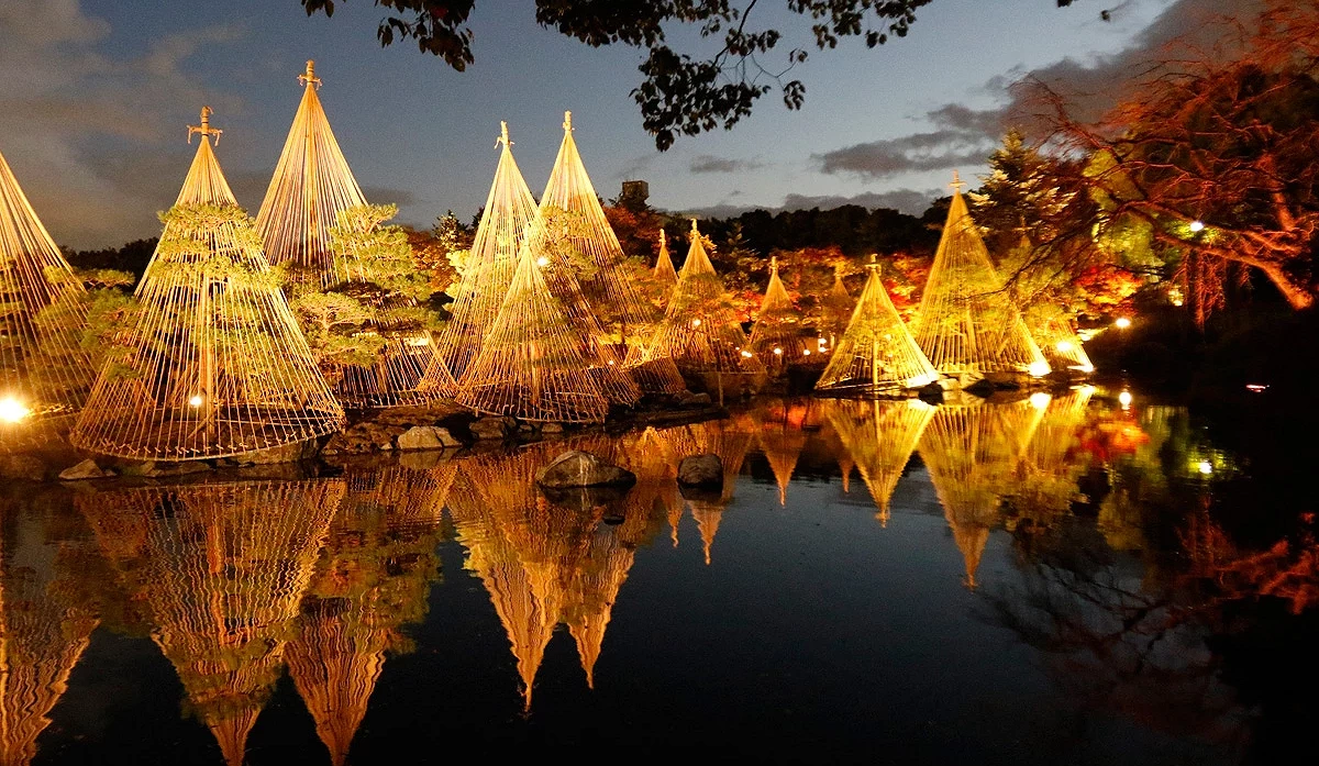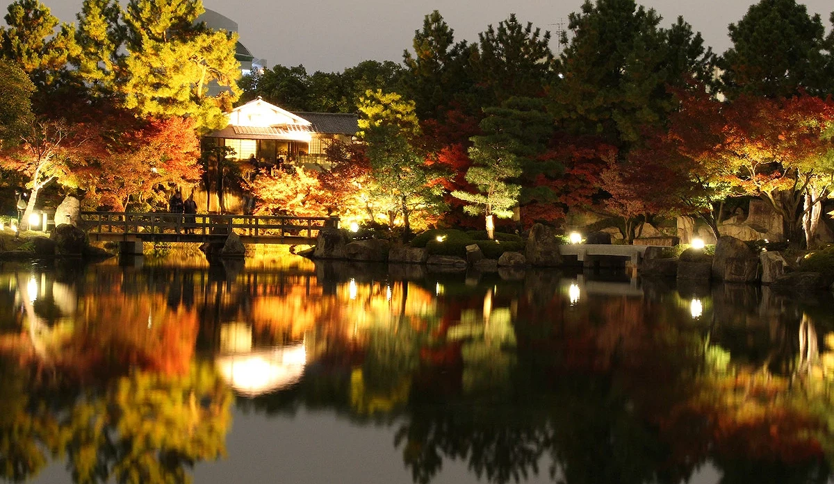 「白鳥庭園 汐入之庭」燈光照映下相當療癒