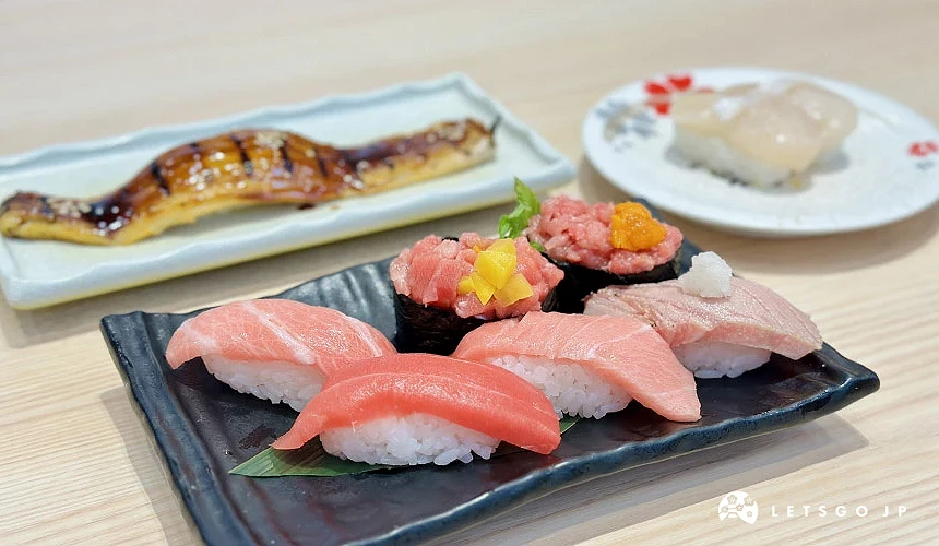想品嚐新鮮海味,「握壽司的德兵衛(廻転寿司 にぎりの徳兵衛)」是不容錯過的人氣餐廳。以產地直送海鮮聞名,不同季節前往還能品嘗到當季限定魚種,讓人每次造訪都有新亮點。店內氣氛溫馨,吧台座位可看見師傅現場握製壽司,兼具視覺與味覺雙重享受。推薦必吃鮪魚六貫拼盤(本まぐろ食べ比べ六貫),從赤身到大腹一次品嚐多層次油脂香氣;現烤的一條星鰻壽司(穴子一本焼き)香甜柔軟、入口即化;帆立貝則鮮甜飽滿,也是店內熱門選擇。平日午間時段還有提供免費味噌湯,一餐吃下來價格親民超划算!